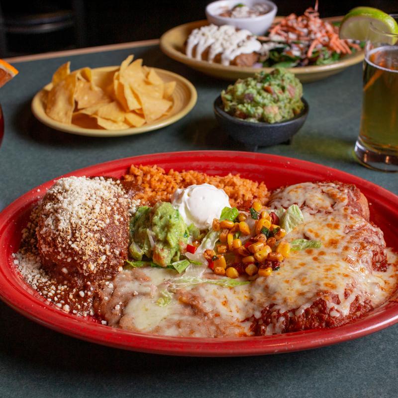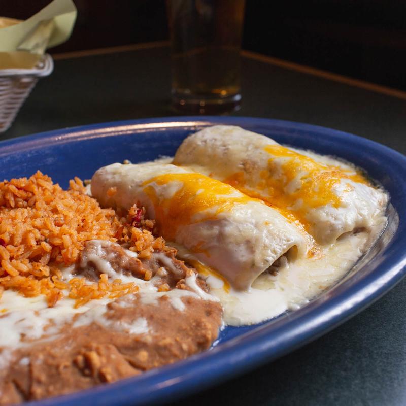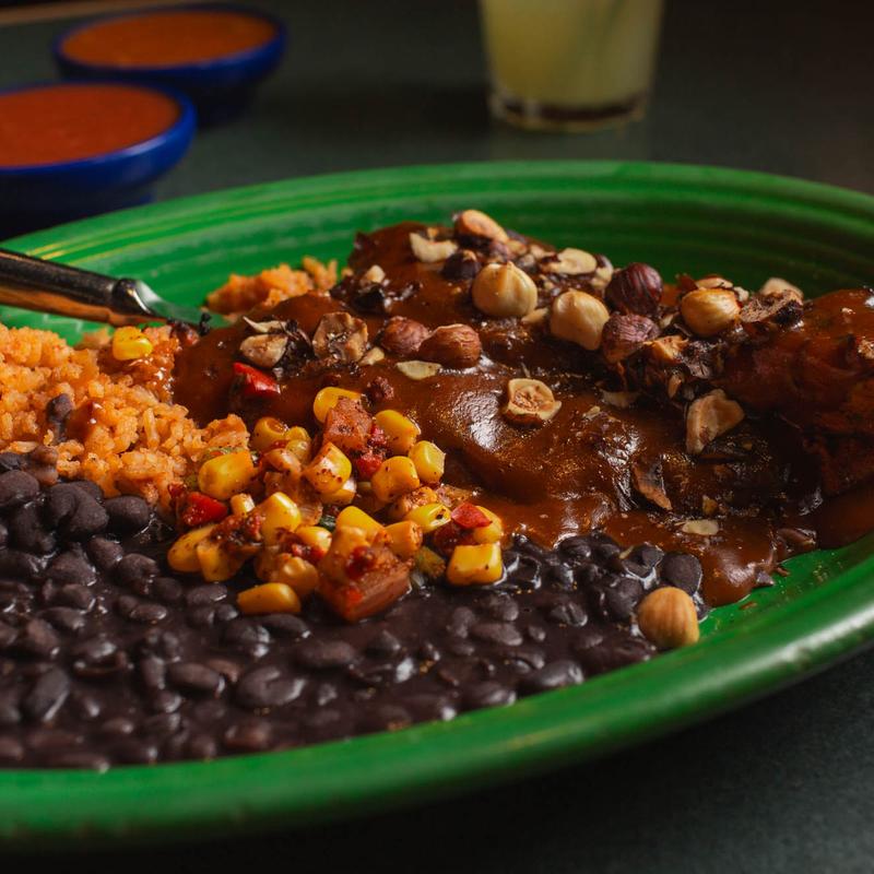 ala carte $8 | one with rice & beans $12 | two with rice & beans $18 • chicken or beef, choice of mole amarillo or pistachio mole sauces, topped with cheese